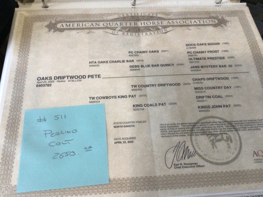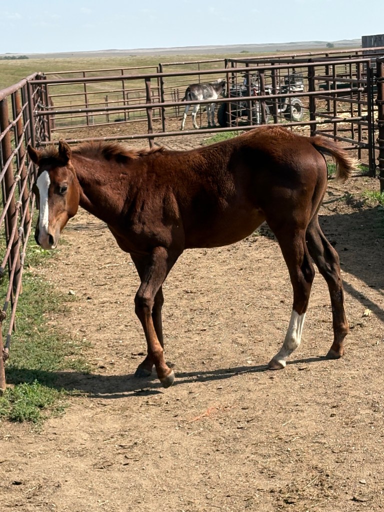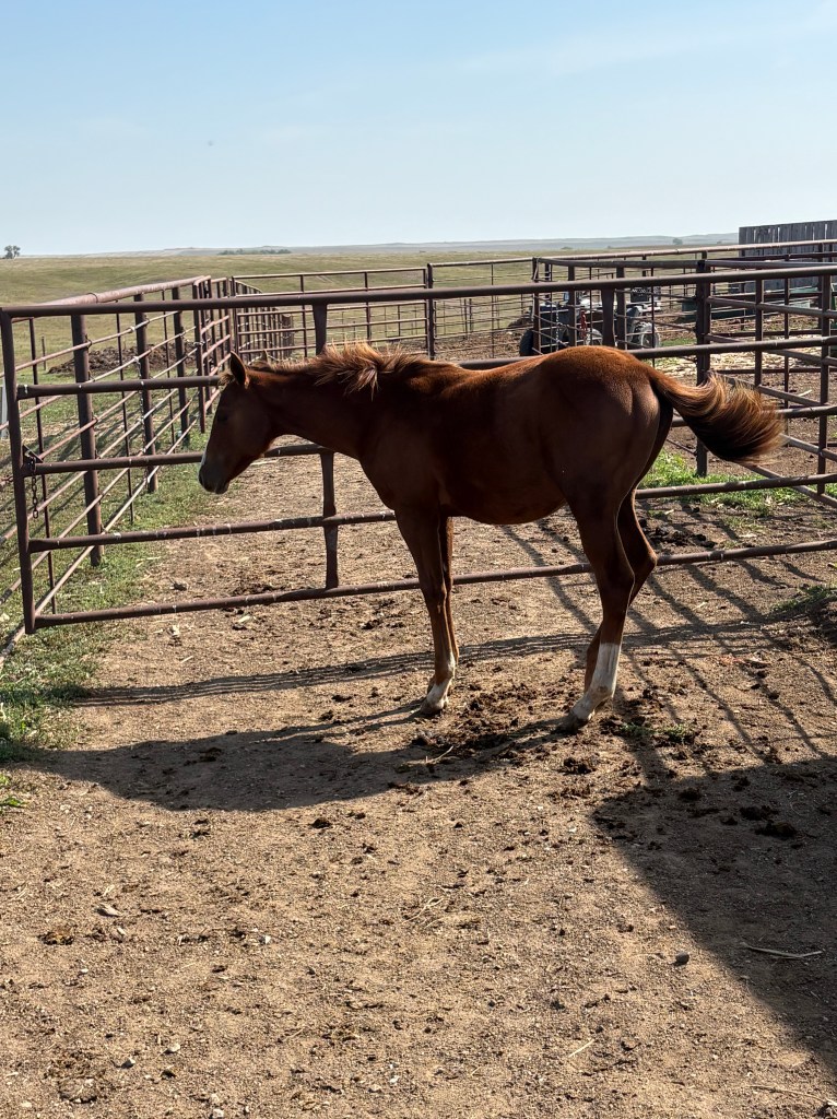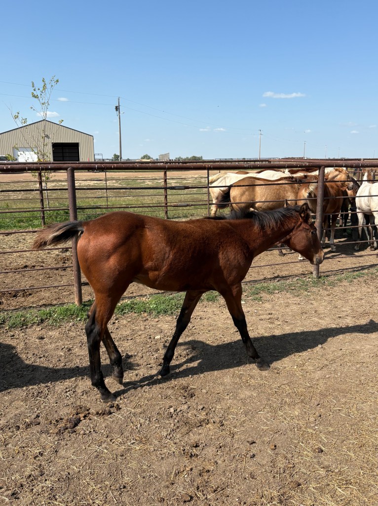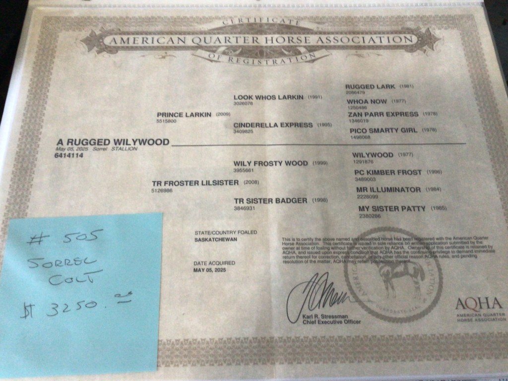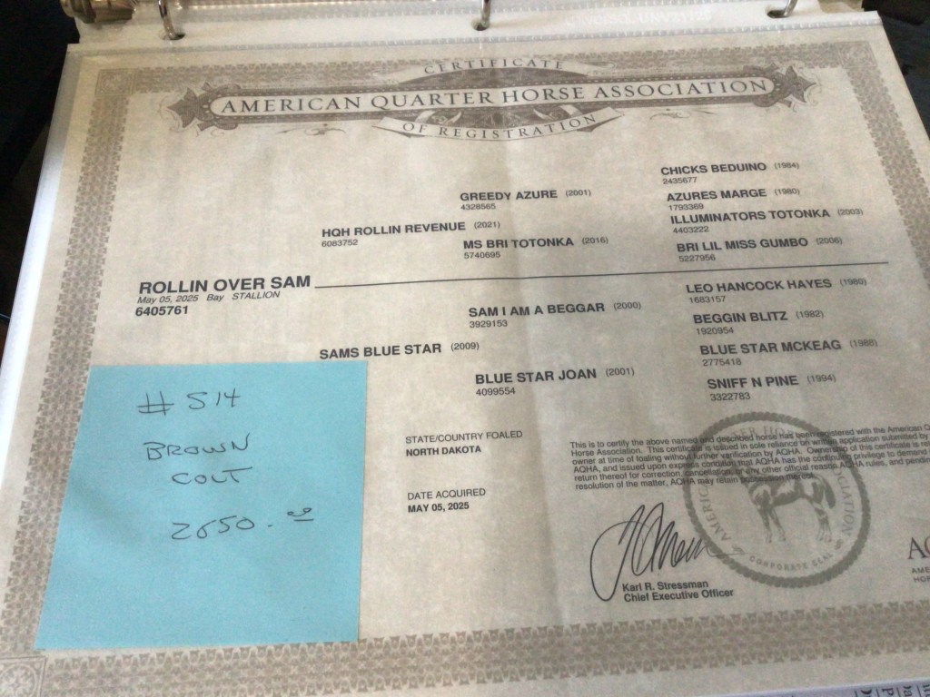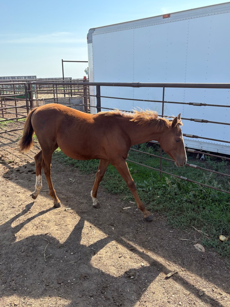 Selling as grade. Both dam and sire are registered (see above pictures), but the registration application for this filly were never sent by previous owner. I will provide the previous owners phone number for you to contact if you want to register her.